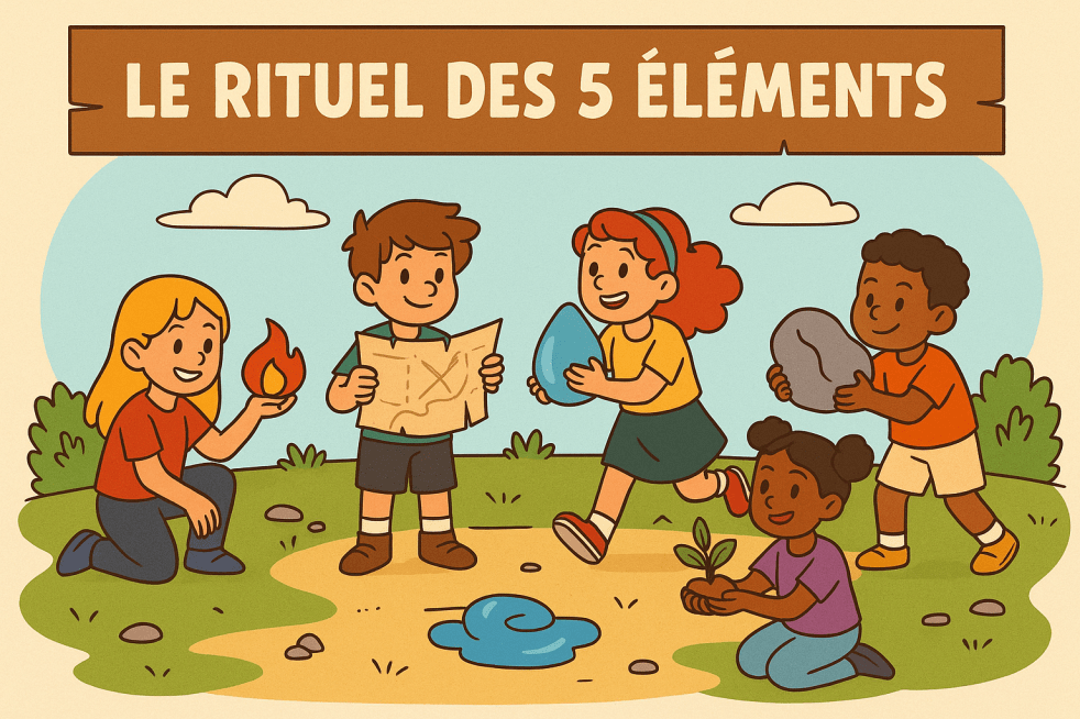 🧙♂️ CONTEXTE À LIRE AUX ENFANTS "Le Portail de l’Entre-Monde est tout proche…Vous avez retrouvé le Collier de Pouvoir.Mais celui-ci ne pourra fonctionner que si vous parvenez à réveiller les 5 Éléments oubliés depuis des siècles : 🌍 la Terre 🌊 l’Eau 🔥 le Feu 🌬️ l’Air ✨ l’Esprit Chaque élément a été scellé dans… Lire la suite 🔮 Grand jeu 5 sur 8 – Le Rituel des 5 Éléments